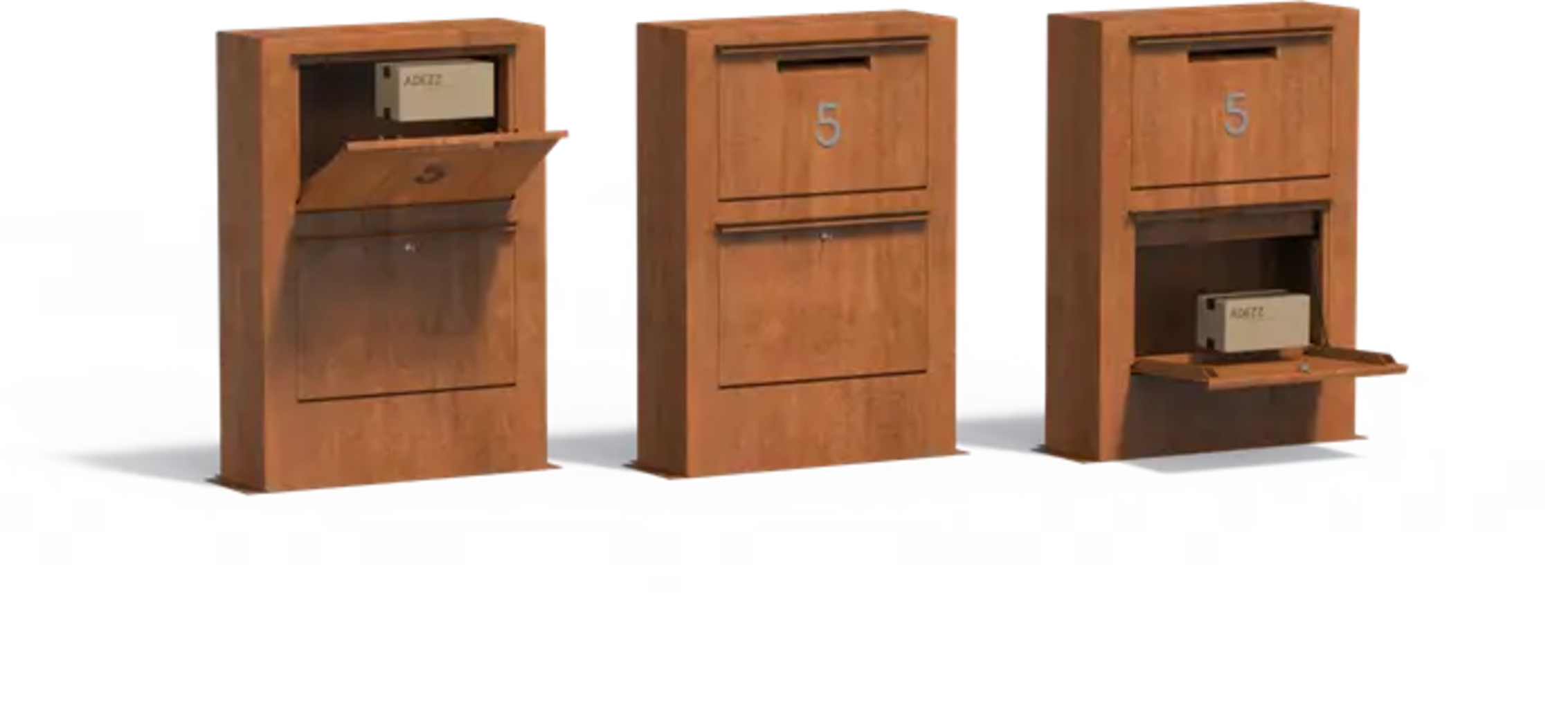 La boîte aux lettres PACA est un mélange parfait de design moderne, de robustesse et de longévité. Fabriquée en acier Corten de qualité, cette boîte aux lettres se distingue par sa couleur brun-orangé, que prend sa couche de rouille naturelle.
