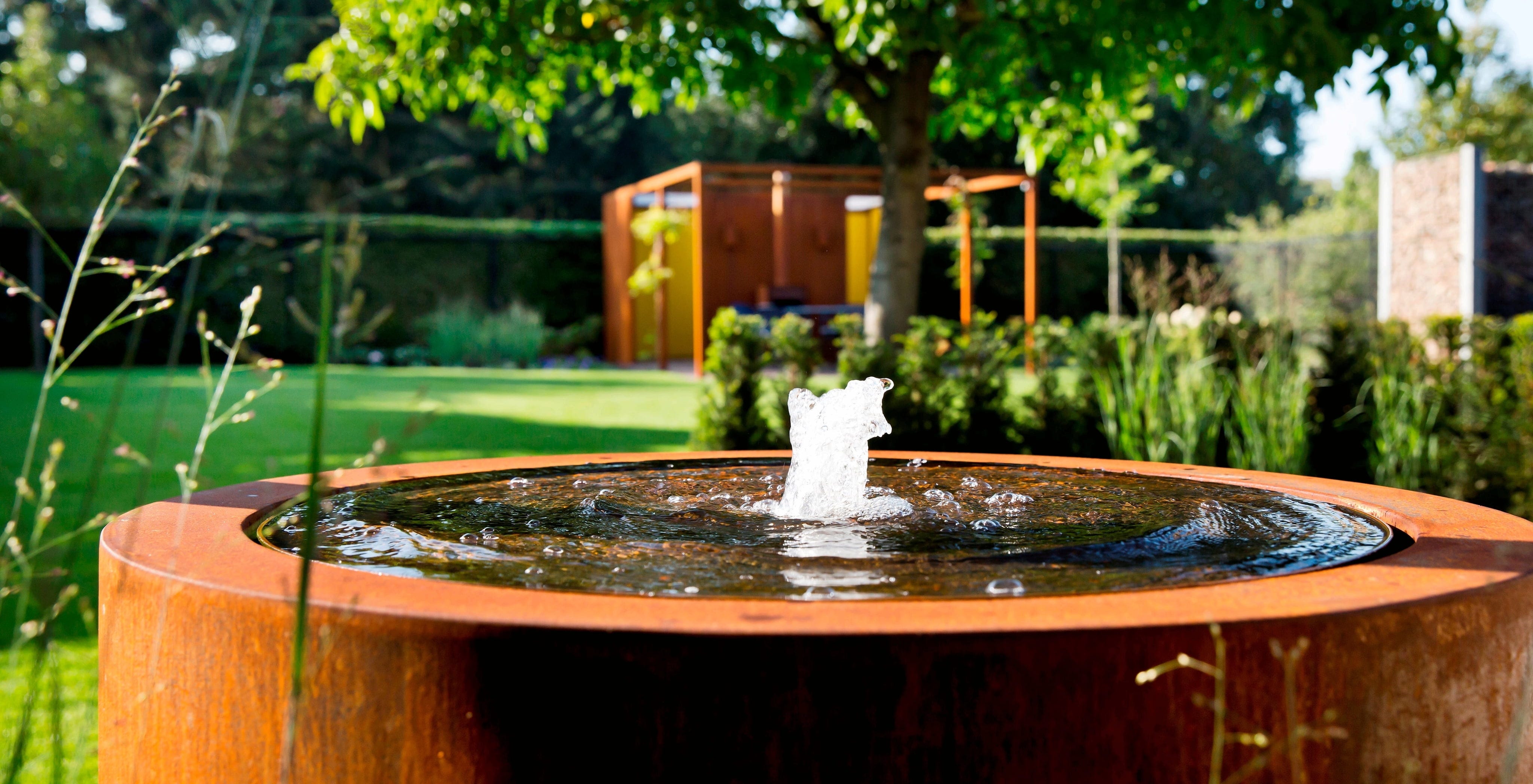 Remarque : La table d'eau est livrée sans patine de rouille. Celle-ci se développe toutefois par elle-même en l'espace de 4 à 5 mois, en fonction des conditions météorologiques et de l'emplacement. Pour un résultat plus rapide, l'élément peut être traité avec un accélérateur de rouille.