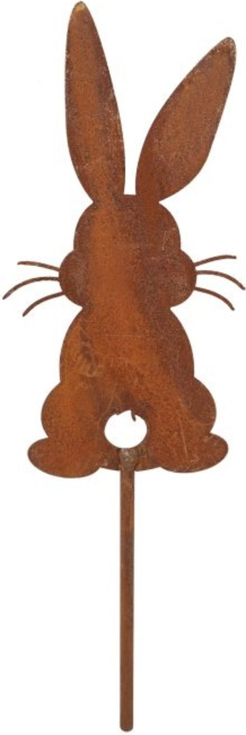 Cette décoration "lapin" est destinée à être placée dans un parterre de fleurs ou dans un pot. La patine en rouille donne une touche moderne et chic à votre jardin !