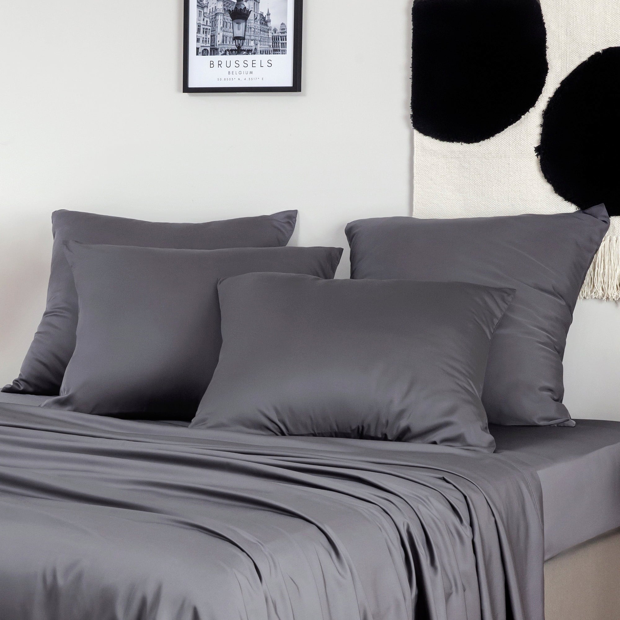 Bambaw Cozy Taie d'Oreiller en Bambou 65 x 65 cm, Lot de 2, Charcoal