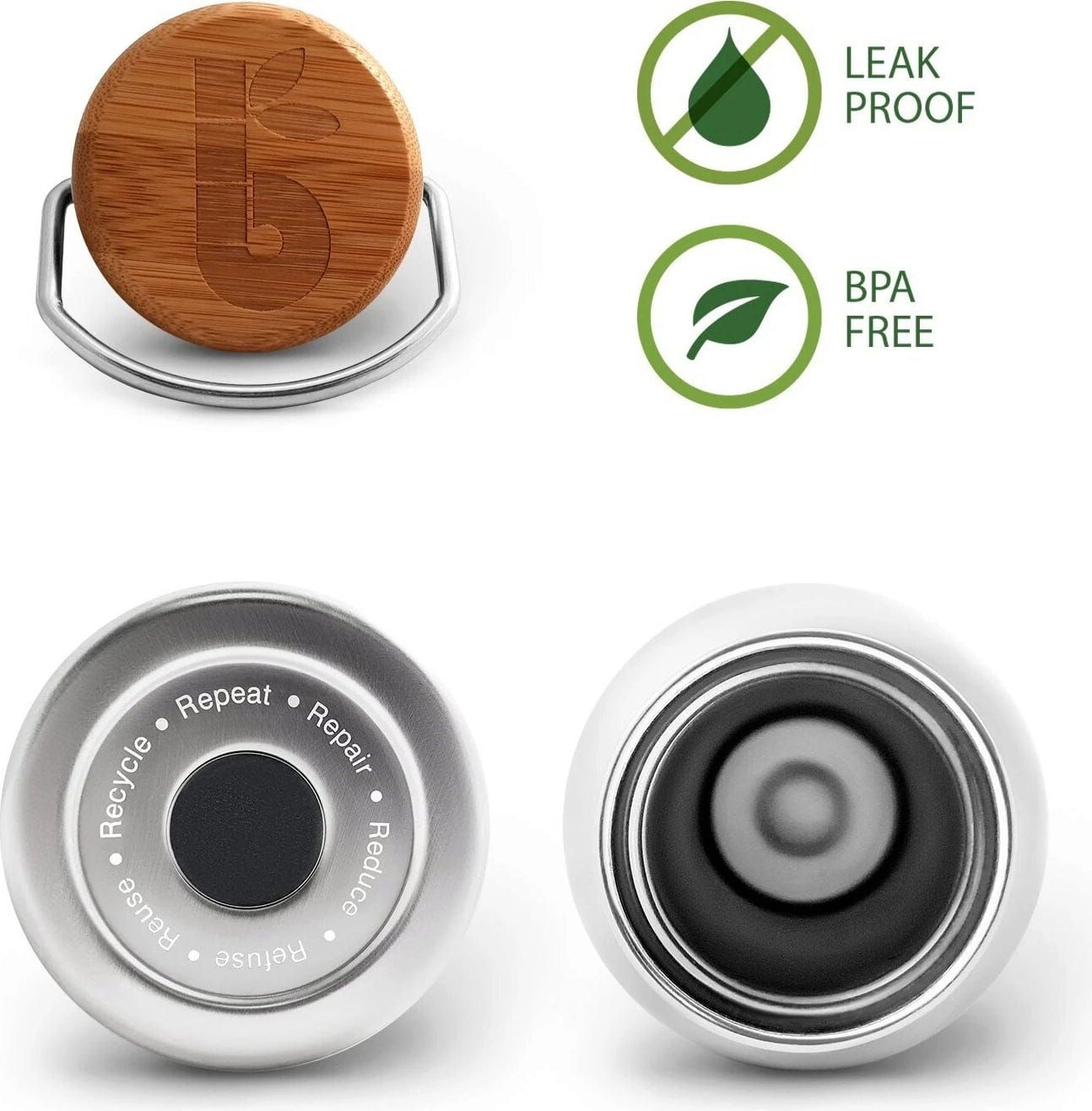 - Est en acier inoxydable, absolument exempte de plastique, et élégante et intemporelle en termes de design. Elle se referme avec un bouchon en bois de bambou.