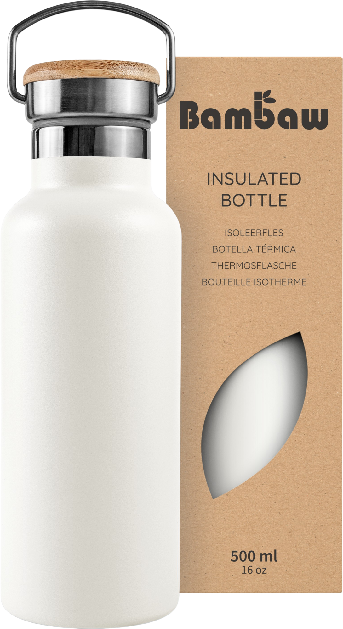 Bambaw Bouteille Isotherme en Inox 500 ml, Polar White