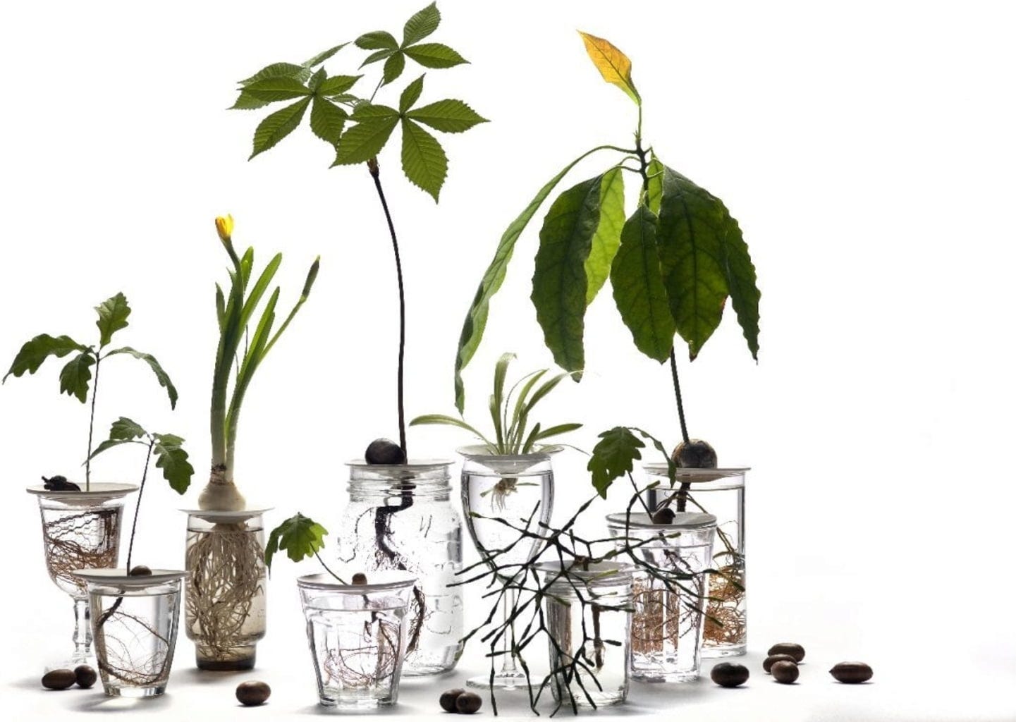 Cet ensemble élégant contient tout ce dont vous avez besoin pour vous adonner aux joies de la germination et des boutures de vos plantes préférées, dans l'eau.