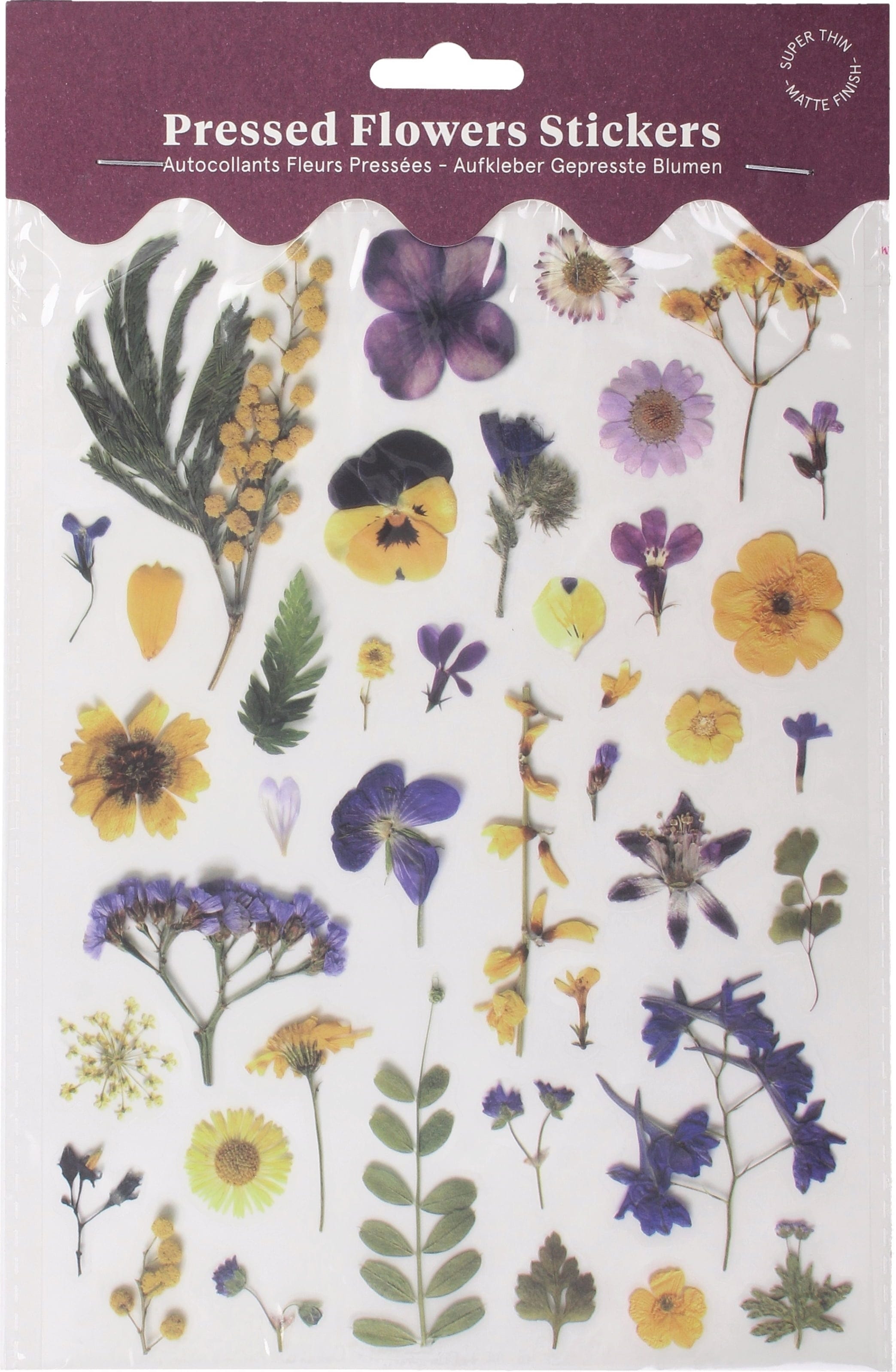 Botanopia Feuille d’Autocollants "Fleurs Pressées", Jaune & violet