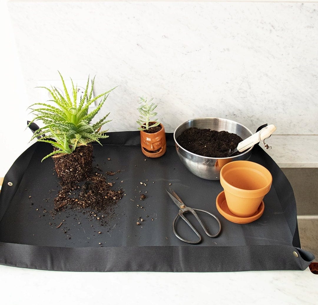 Ce tapis de jardinage d'un chic irrésistible est aussi un accessoire très pratique pour les jardiniers amateurs passionnés. Vous pouvez l'utiliser sur à peu près n'importe quelle surface pour planter vos semis et rempoter, propager, tailler ou humidifier vos plantes.