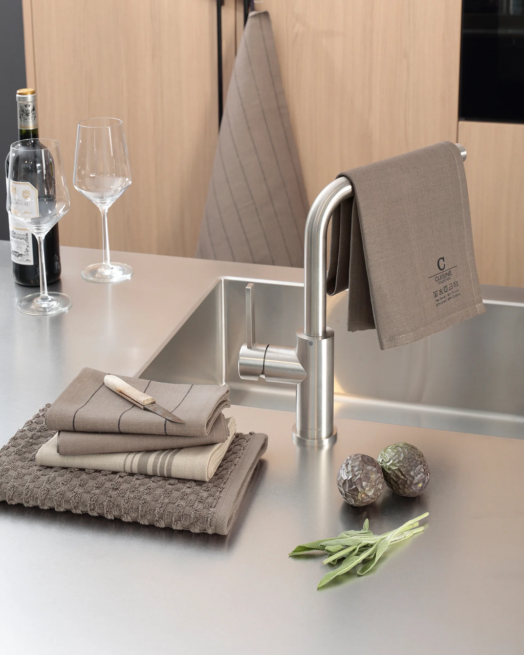 Avec leur design épuré à fines rayures et leurs couleurs naturelles minutieusement sélectionnées, ces torchons intemporels apportent un vent de fraîcheur à votre cuisine et s’intègrent parfaitement à un style moderne.