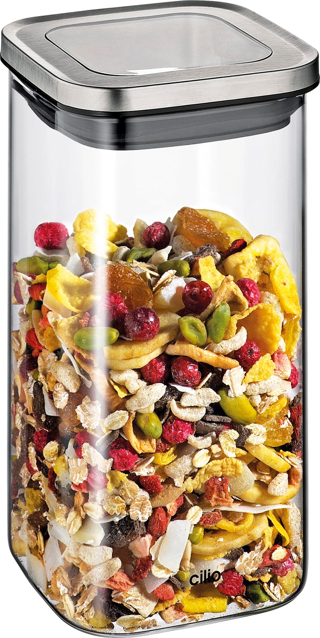 Les Boîtes de Rangement CUBO de cilio apportent de l’ordre dans votre cuisine. Fabriquées en verre borosilicate résistant, elles allient légèreté et robustesse pour un usage quotidien. Leur design minimaliste s’intègre parfaitement dans une cuisine moderne et crée une harmonie visuelle sur vos étagères.