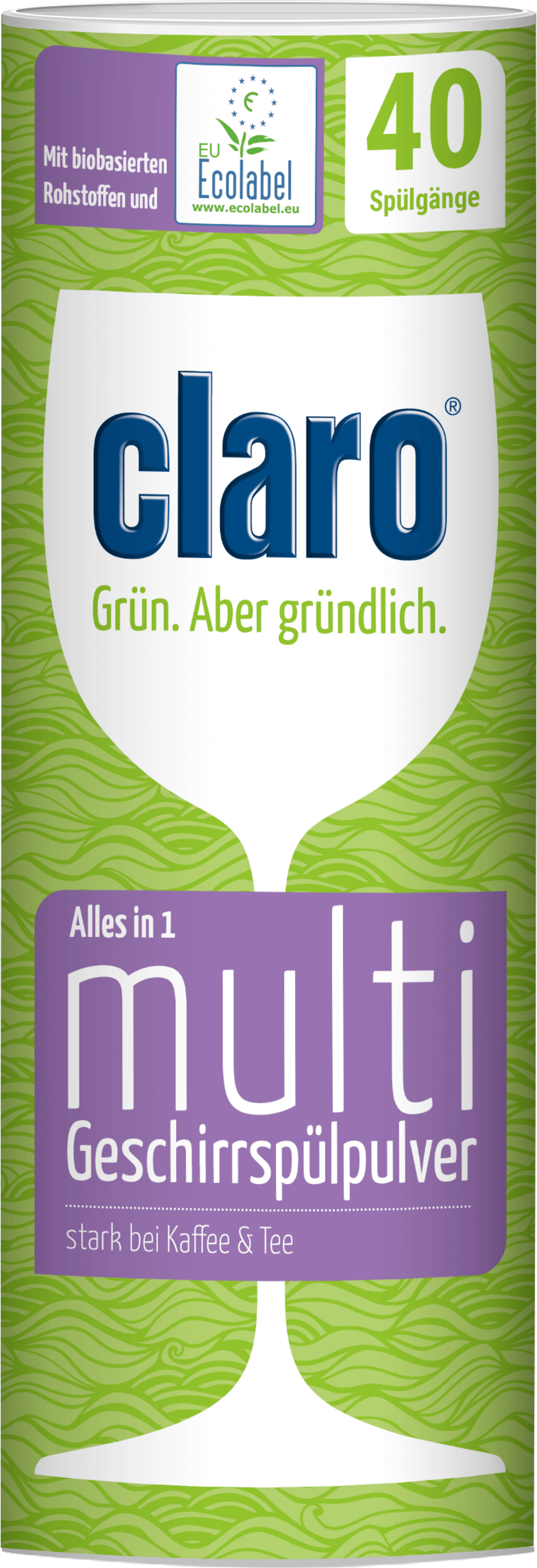 Cette poudre Multi de claro est un produit tout-en-1 pour une vaisselle propre et éclatante ! Le produit - parfait pour éliminer de manière fiable la saleté et les restes de nourriture - contient déjà sel et liquide de rinçage, de sorte qu'aucun produit supplémentaire n'est nécessaire. La poudre est végétalienne, sans chlore ni huile de palme.