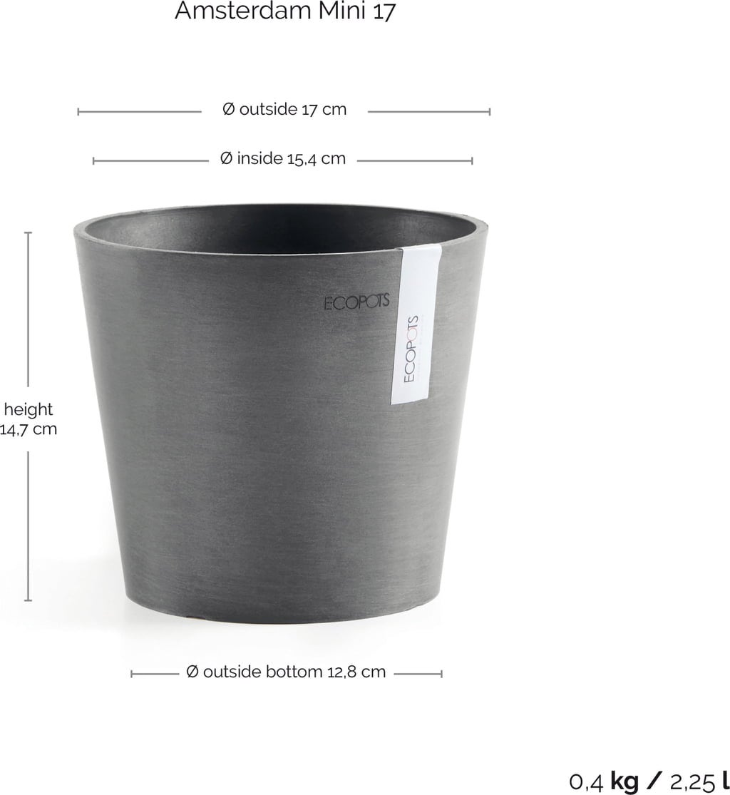 Ecopots Pot Amsterdam - Gris, Ø 17 cm, hauteur 15 cm