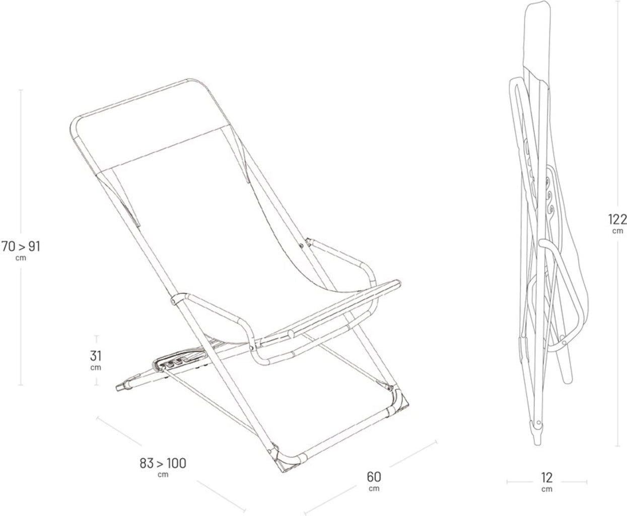Un système de crémaillères de sécurité vous permet de passer en douceur entre trois positions de détente, de l’assise droite au dossier incliné. La matière résistante affronte la pluie et les UV, et sèche très rapidement : après une averse, votre fauteuil est prêt à reprendre du service. Léger et ultra-compact une fois plié, ce modèle coloré se range en un instant ou se transporte facilement jusqu’à votre coin préféré.