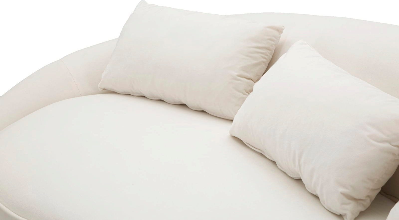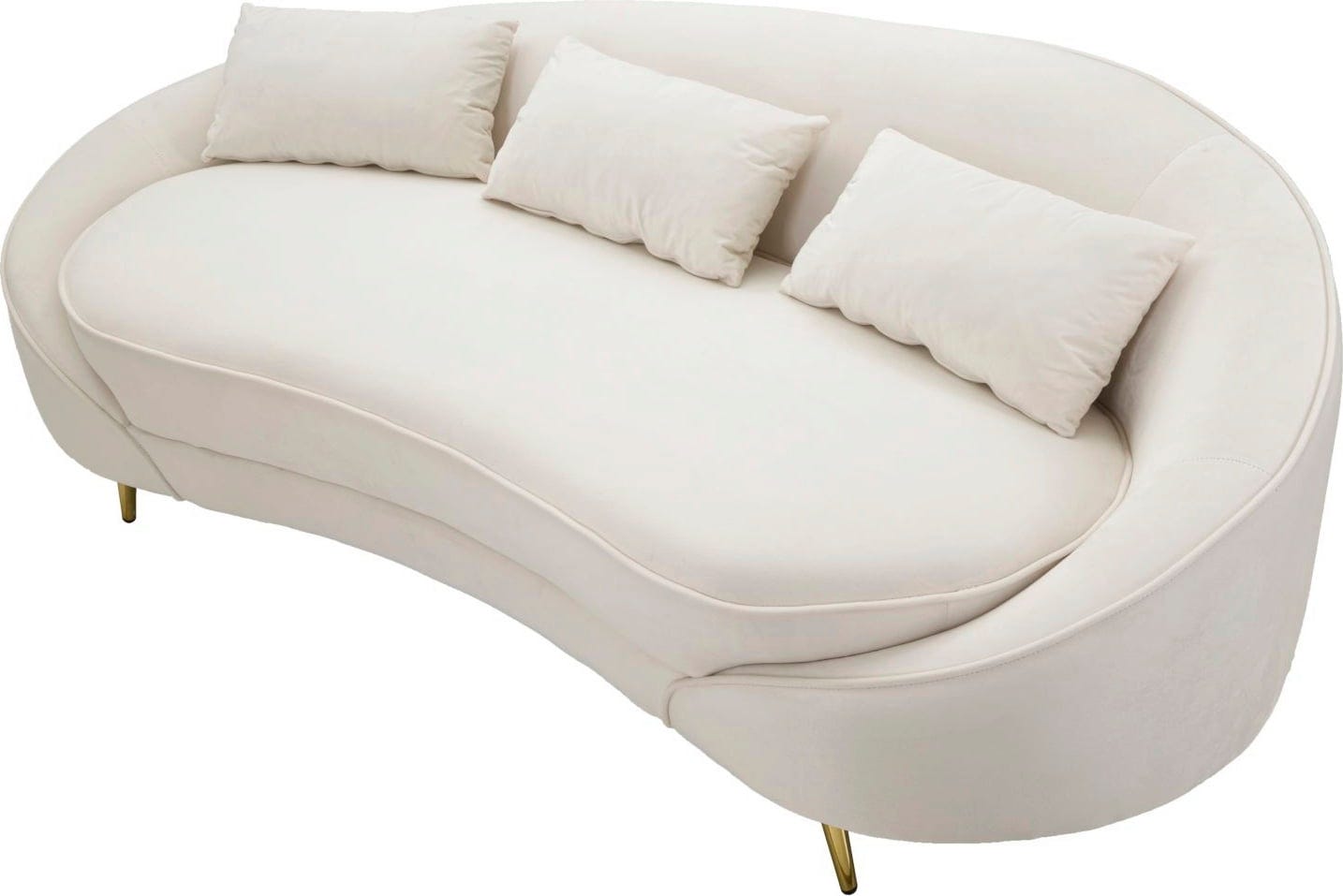 Apportez une touche d'élégance, de glamour et de confort luxueux à votre salon avec ce canapé trois places stylé ! Le revêtement doux et luxueux dans une teinte crème claire et les lignes douces et accueillantes de sa forme courbée et asymétrique en font un élément central impressionnant.