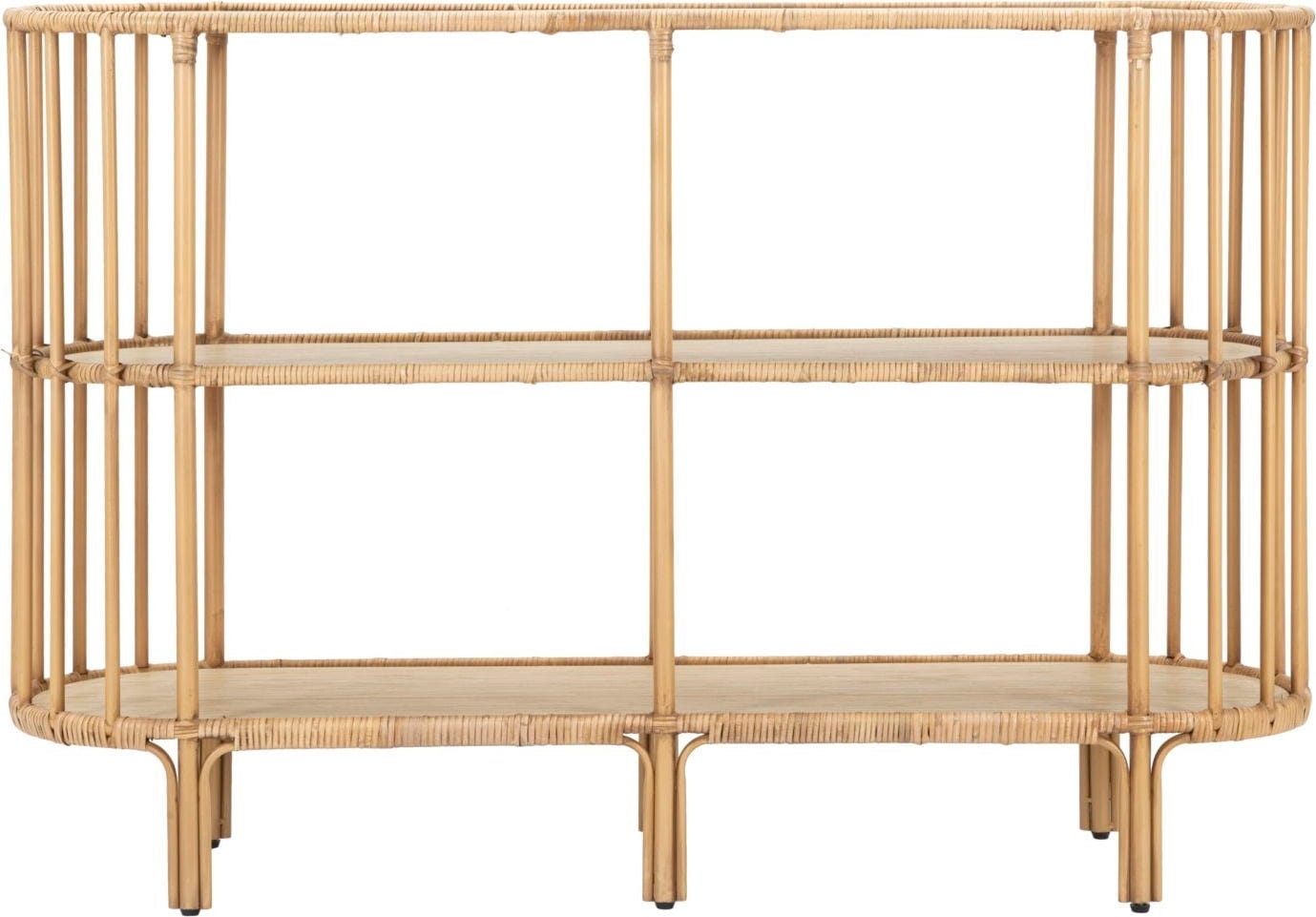 Son point fort : un design entièrement arrondi, où les lignes douces des côtés s’accordent parfaitement aux trois larges étagères. Grâce à sa structure ouverte et à ses fines tiges verticales, le meuble conserve une légèreté visuelle agréable, malgré ses trois niveaux. Dans l’entrée pour un usage pratique ou dans le salon pour exposer vos objets déco : la console Panama s’adapte à tous les styles.