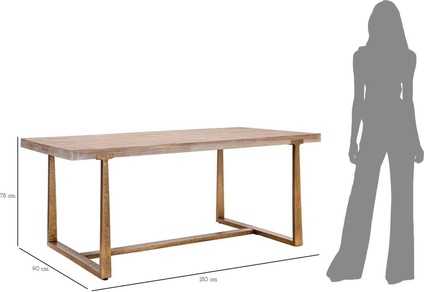 En contraste, la structure métallique angulaire est d'une teinte bronze plus foncée. Cette structure assure non seulement une stabilité maximale, mais donne également à la table une touche industrielle et froide. Cette table est le cœur idéal pour votre maison moderne, qui attache de l'importance aux formes claires et aux matériaux de caractère !