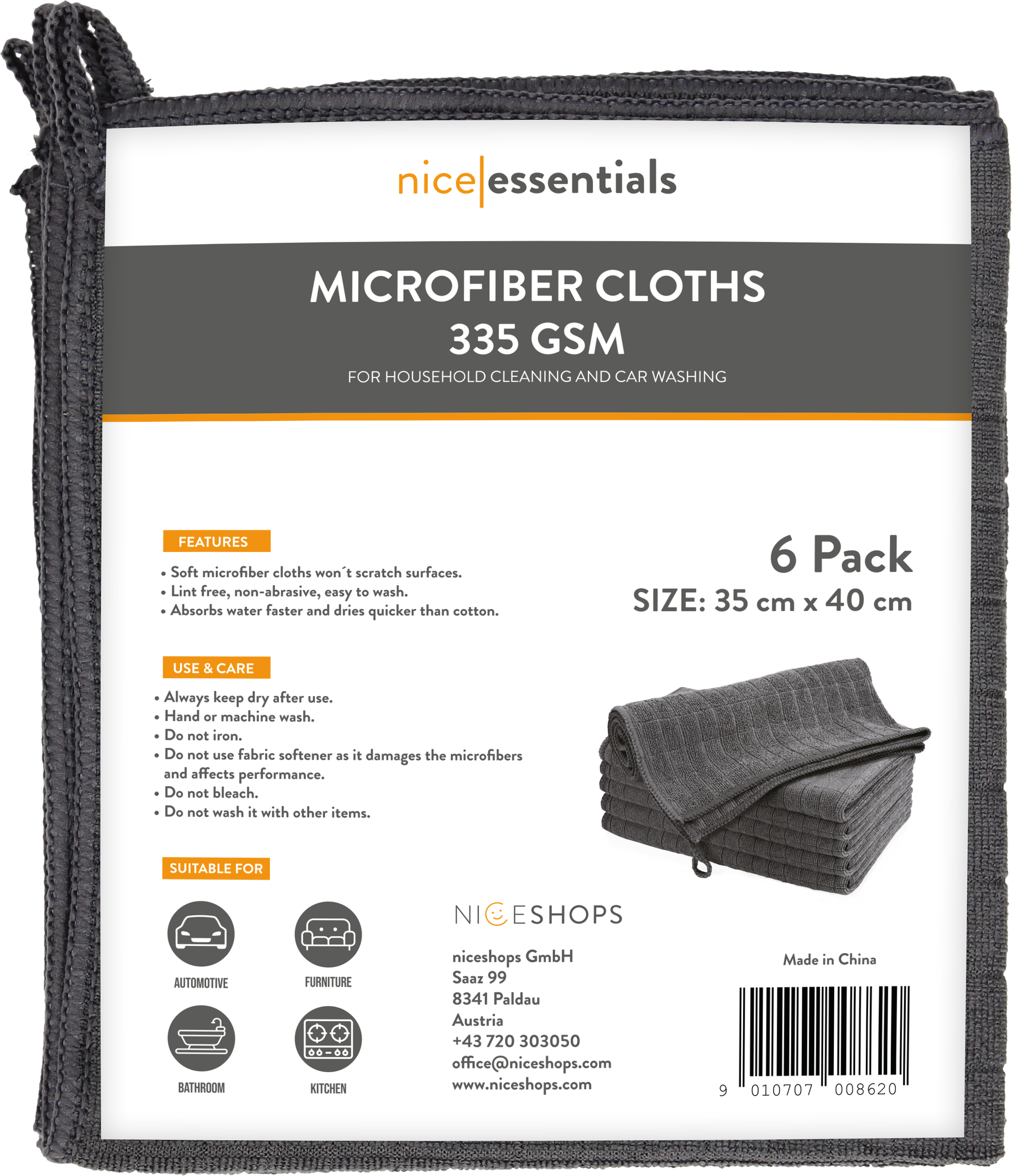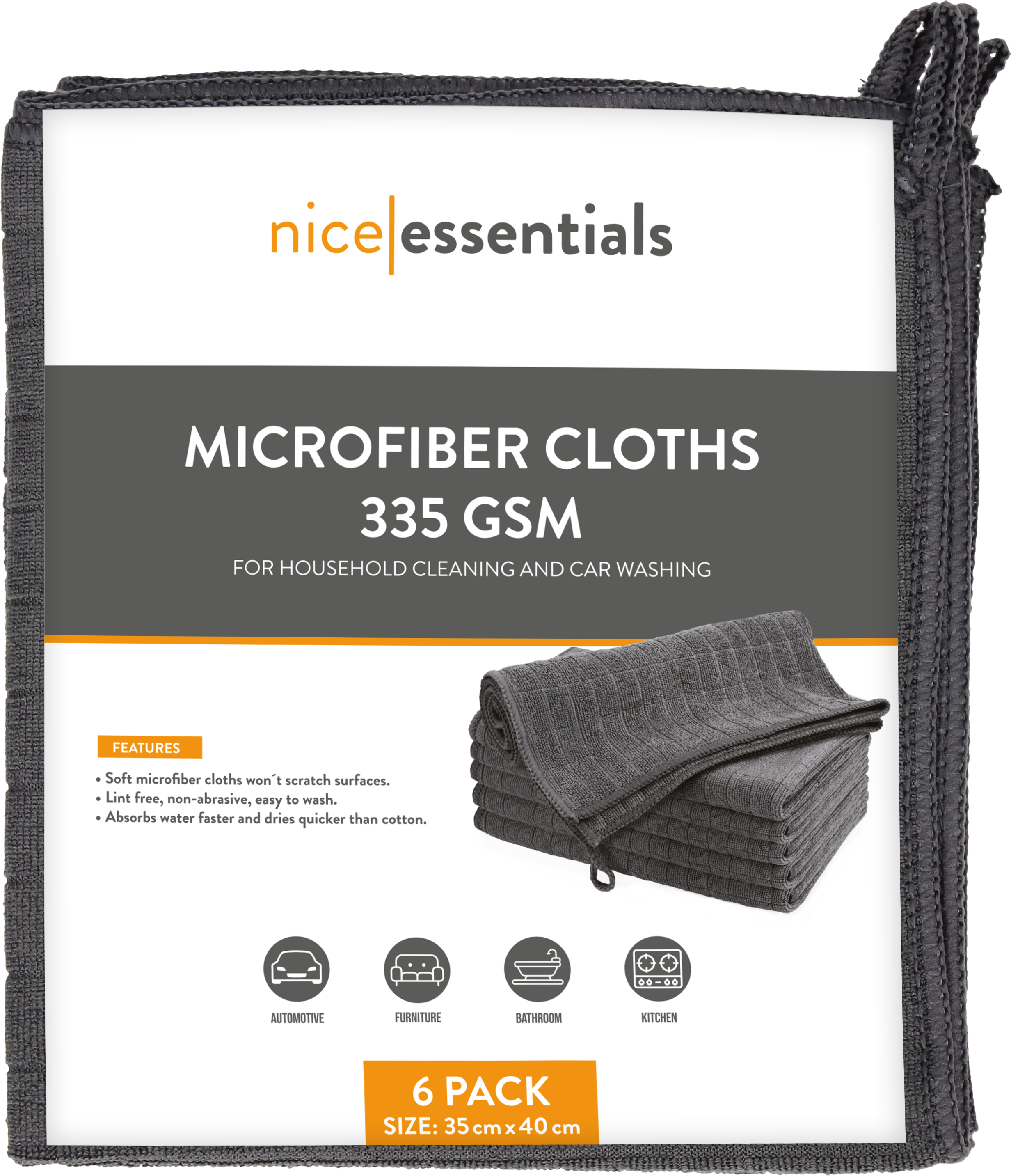 nice essentials Set de Chiffons de Nettoyage en Microfibre 35 x 40 cm, 6 pièces