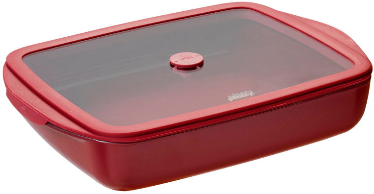 Pebbly Plat Rectangulaire en Verre avec Couvercle en Verre et Silicone, 1,6 L, Cerise