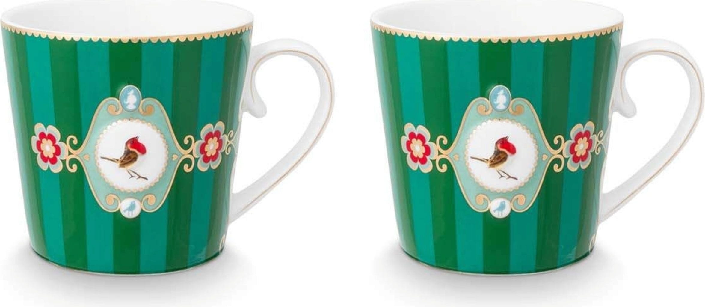 Pip Studio Set de Mugs Love Birds, Vert rayé