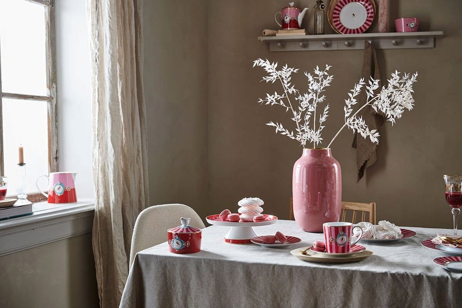 Pip Studio Tea for One Love Birds, Rouge rayé