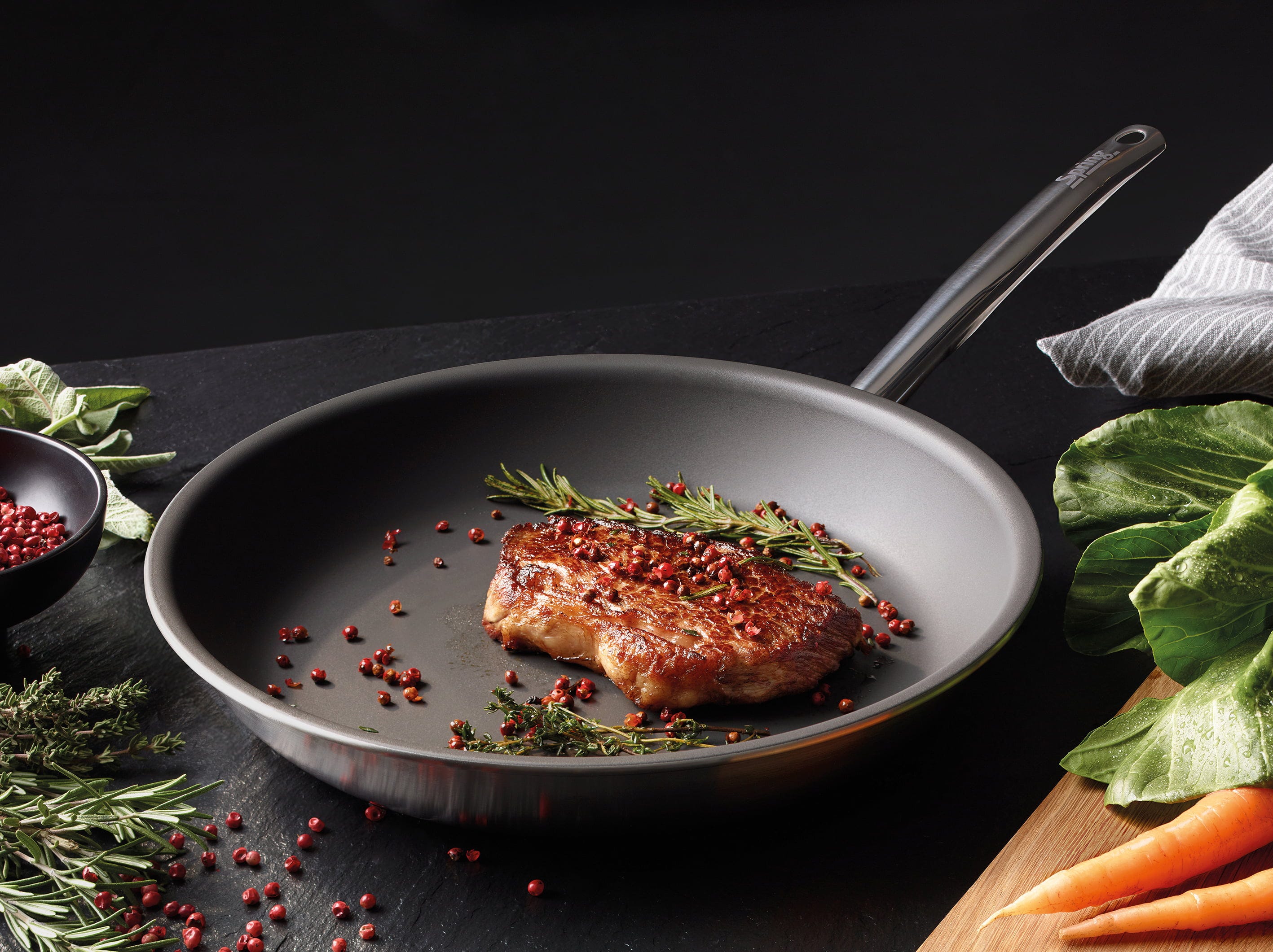 Découvrez une nouvelle dimension de la cuisson avec la Brigade Ultimate de Spring ! Cette poêle allie la rapidité du matériau multicouche 5 couches éprouvé à une surface révolutionnaire et extrêmement robuste. Sa particularité : une quantité minimale d'huile de cuisson suffit pour activer l'effet antiadhésif naturel. Que ce soit pour des crêpes délicates, un œuf au plat parfait ou un steak croustillant, tout glisse sans effort hors de la poêle !