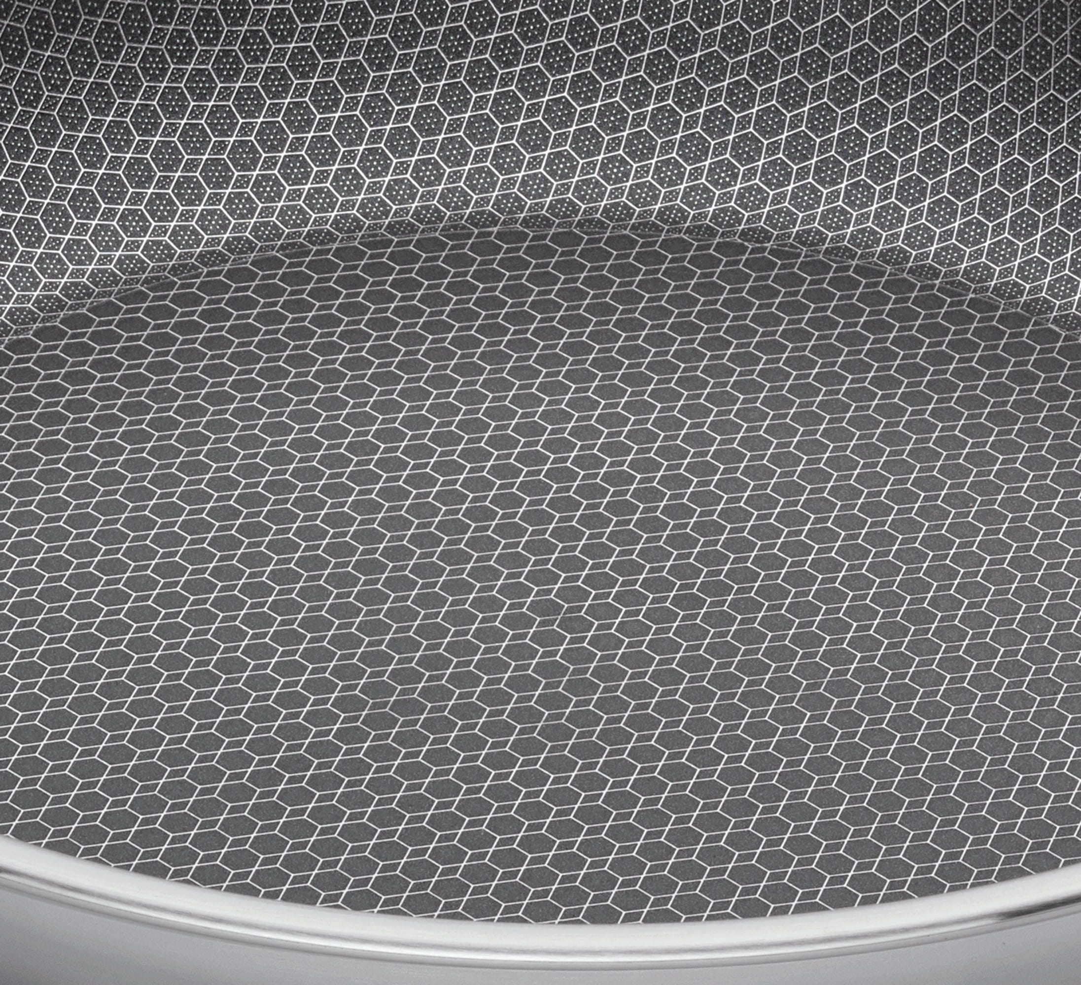 - Technologie Cut Resist : La structure alvéolaire surélevée en acier inoxydable protège efficacement le revêtement antiadhésif des rayures