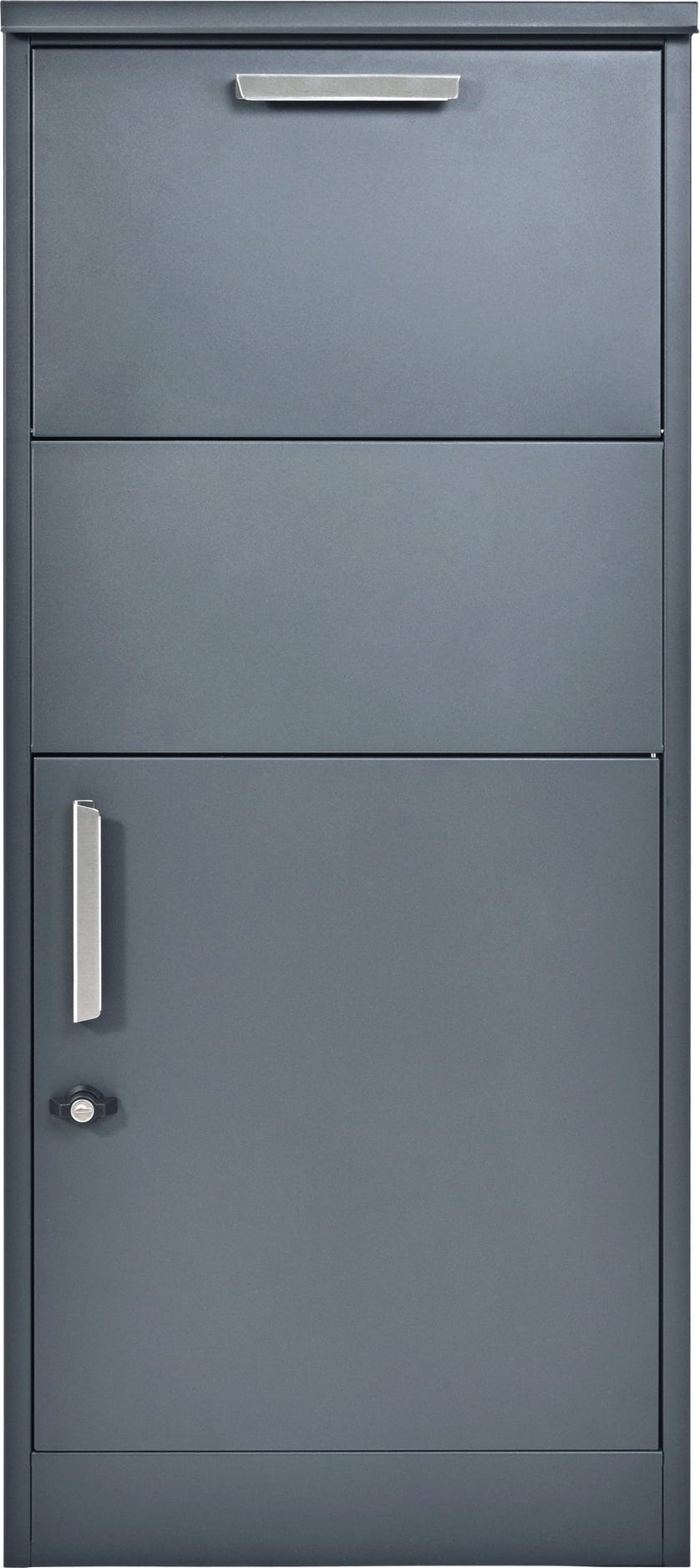 L’envoi est simplement déposé dans le grand compartiment basculant supérieur. Dès que le compartiment est refermé, le colis glisse automatiquement dans la partie inférieure verrouillée de la boîte. Un accès non autorisé par le haut n’est alors plus possible. Fabriquée en acier thermolaqué et résistant aux UV, Pepe résiste à toutes les conditions météorologiques et reste durablement protégée contre la corrosion.